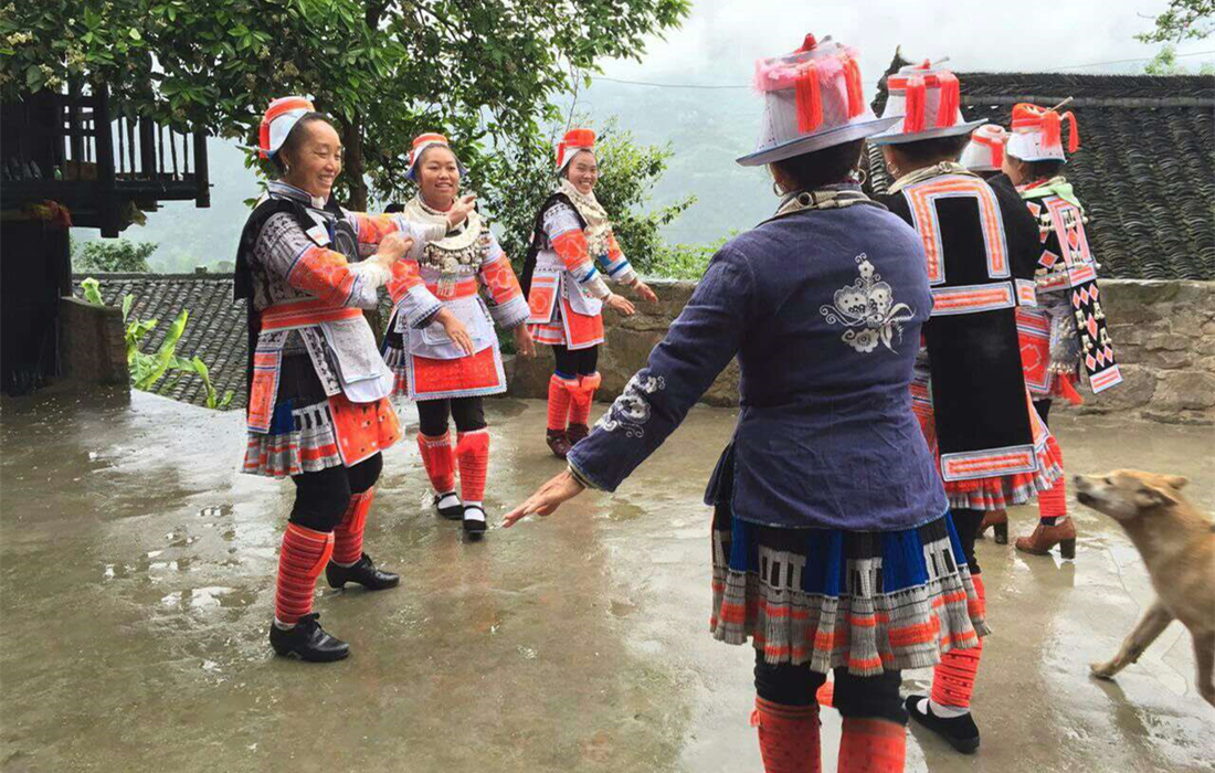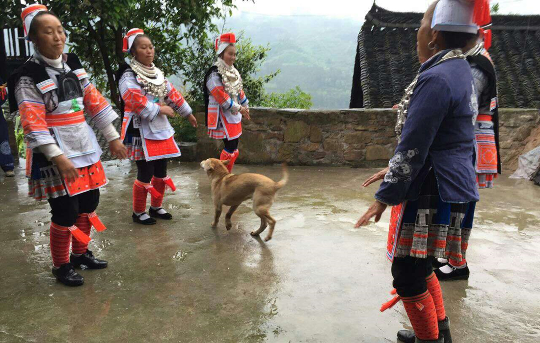 A group of Ge people are doing the Bamboo dance on April 23. Ge people, an ethnic minority group living in Huangping county, Southwest China's Guizhou, is said to be the 57th ethnic minority in China and claimed themselves to be offsprings of Houyi, the mythological Chinese archer. Photo: Xu Liuliu/GT figcaption >