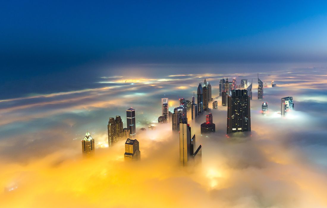German Bjoern Lauen takes the stunning photos of blanketed fog and cloud from the top of the world’s tallest building, the Burj Khalifa, in March 2014, in Dubai, United Arab Emirates. Photo: Bjoern Lauen / Barcroft Media/ CFP figcaption >