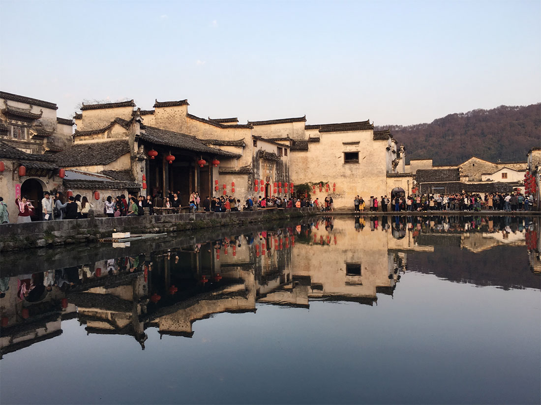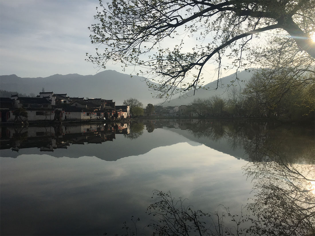 The clear waters of Nanhu Lake are seen at 6:35 am in Hongcun, Anhui Province on April 3.Photo: GT figcaption >