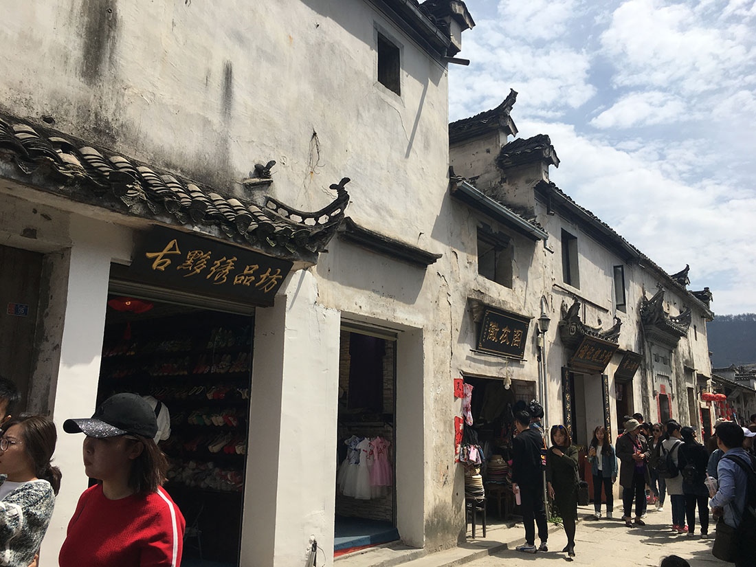 Visitors walk down one of the ancient streets of Hongcun during Qingming Festival on April 3. Photo: GT figcaption >