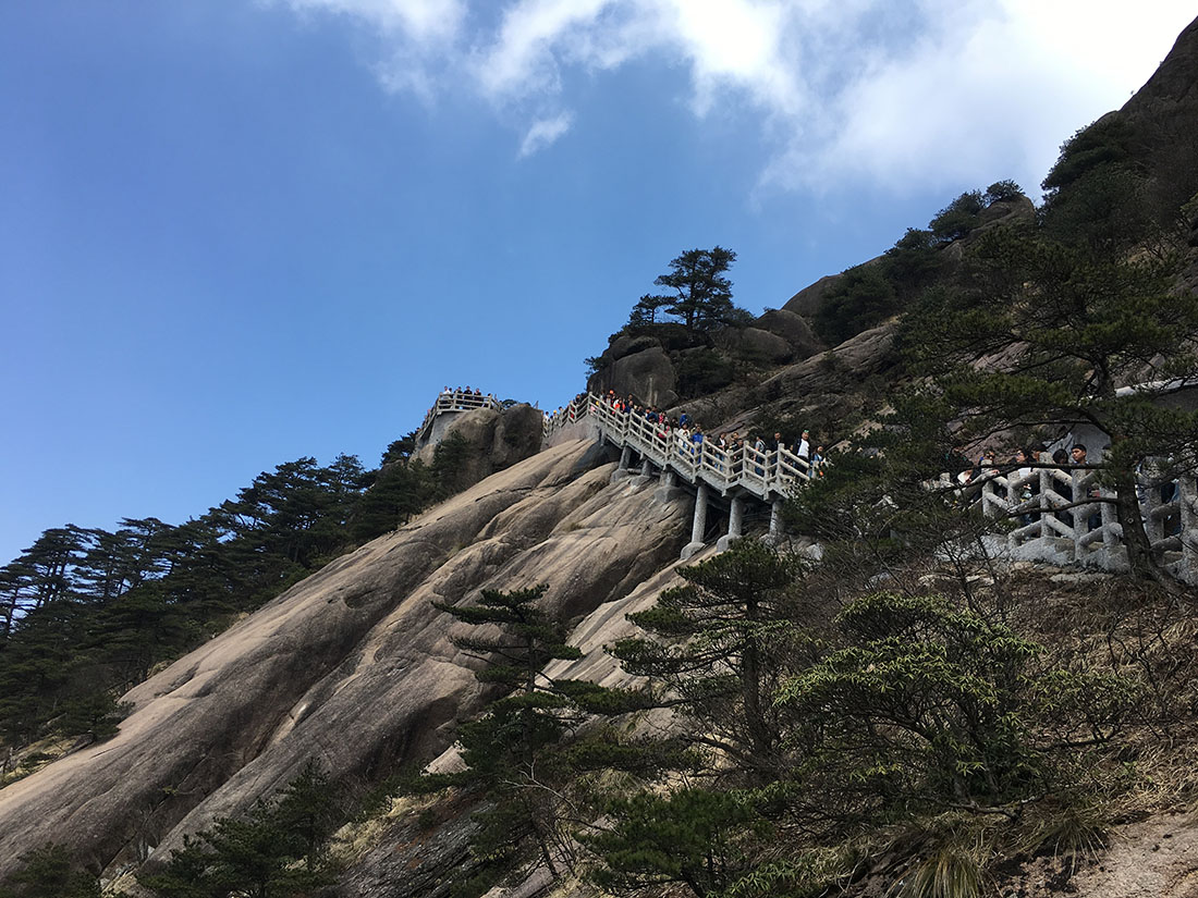 Visitors in the distance snake their way up a sheer flight of steps towards Tiandu Peak, one of the three main peaks of Huangshan Mountain, on April 2. Tiandu Peak sits at an altitude of 1,810 meters, and is famous for its magnificence and distinctive sharp point. Photo: GT figcaption >