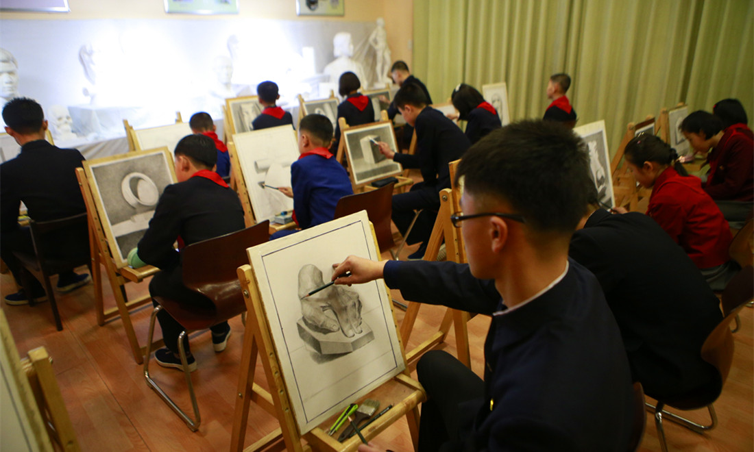 North Korean students practice sketch in the Pyongyang Mangyongdae Children's Palace on April 14. Photo: Li Hao/GT figcaption >
