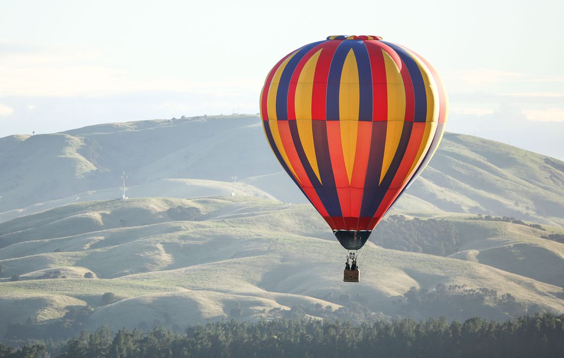 Scott Curson flies 'Oh Lar Lar' during the Meander over Martinborough event at the Wairarapa Balloon Festival on April 16, 2017 in Martinborough, New Zealand. Photo: Hagen Hopkins /Getty Images/CFP figcaption >