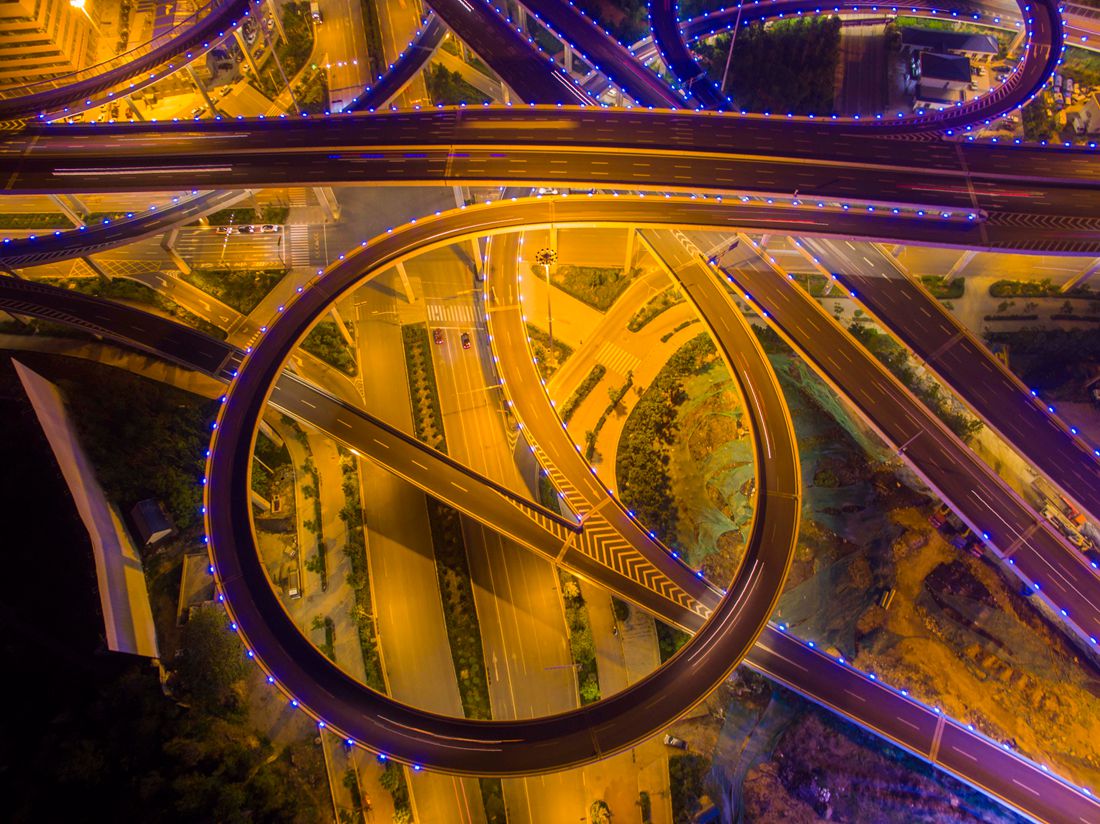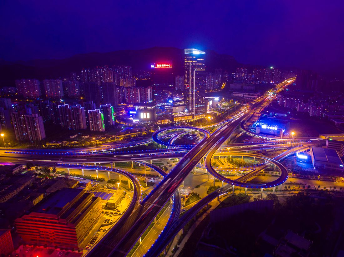 A drone captures this stunning sunset scene at the Yingxiongshan overpasses in Jinan, East China's Shandong Province on May 10, 2017. Photo: CFP figcaption >