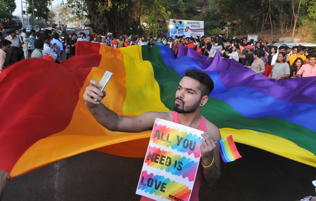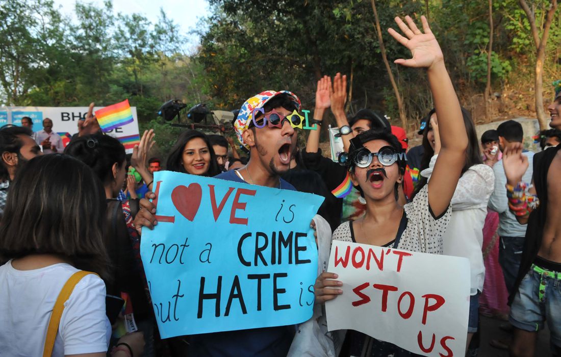 LGBT community members along with supporters take part in central India’s first pride parade on International Day against Homophobia, Transphobia and Biphobia to draw attention to discrimination against the LGBT (lesbian, gay, bisexual and transgender) community, in Bhopal, India on May 17, 2017. Photo: Oswaldo Mujeeb Faruqui/Hindustan Times/Getty Images/CFP figcaption >