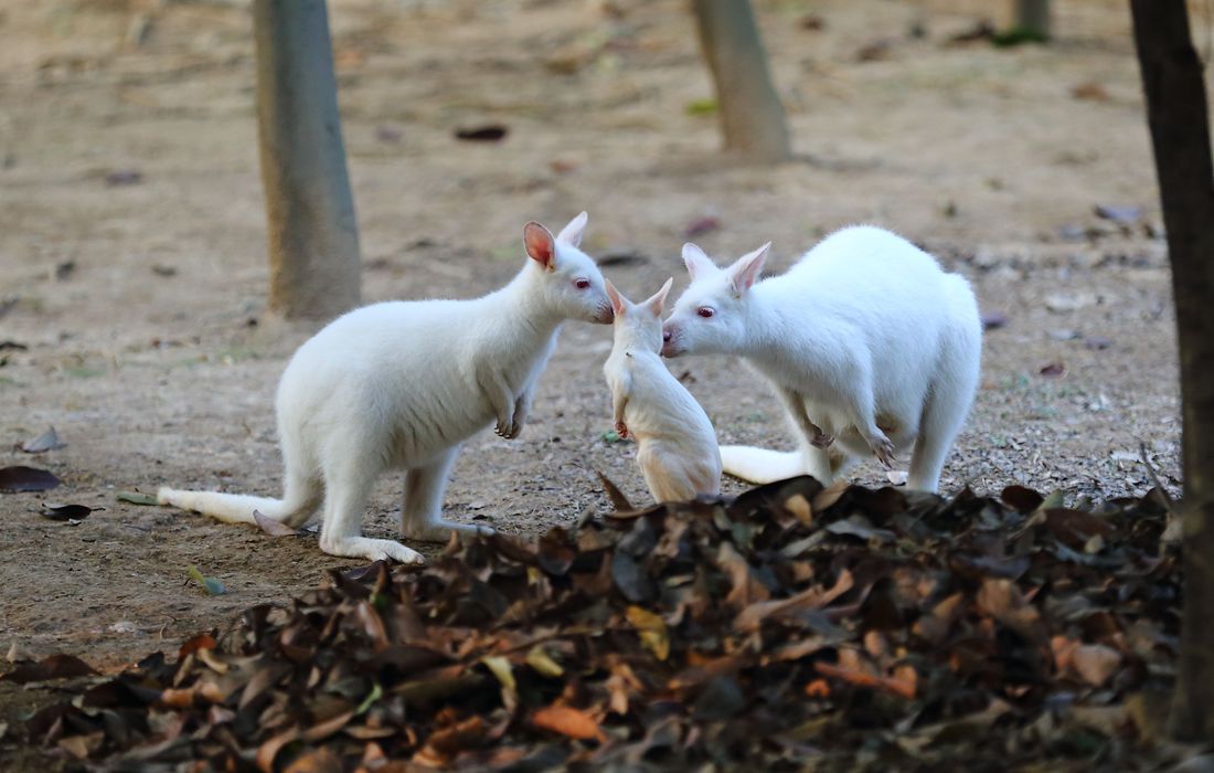 White baby Kangaroos play together at Hangzhou Safari Park in Hangzhou, East China's Zhejiang Province on December 28, 2014. Photo: CFP figcaption >