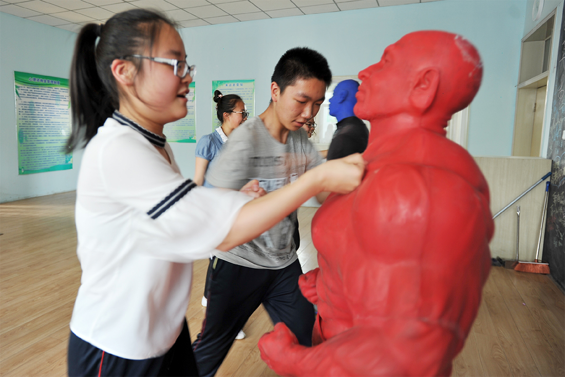 High school students hit rubber dummies to relieve pressure ahead of the gaokao in Xuanhua No.4 School, Zhangjiakou, Hebei Province on Wednesday. Students at the school are also provided with games and counseling to help deal with stress before the exam. Photo: IC