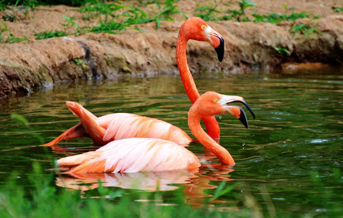 A group of flamingos enjoy the summertime sunshine in the garden for flamingos at Qingdao Forest Wildlife Park in Qingdao, East China’s Shandong Province on June 1, 2017. Photo: CFP figcaption >