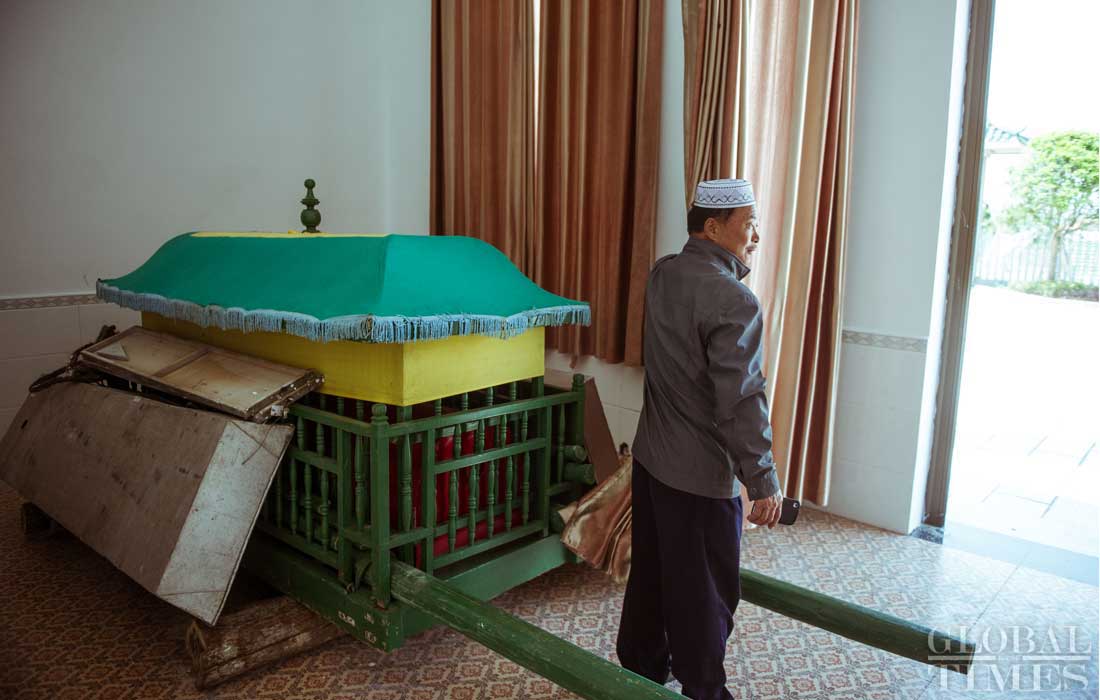 A coffin used during funeral processions is stored at the Fengshu Mosque. Photo: Li Hao/GT figcaption >