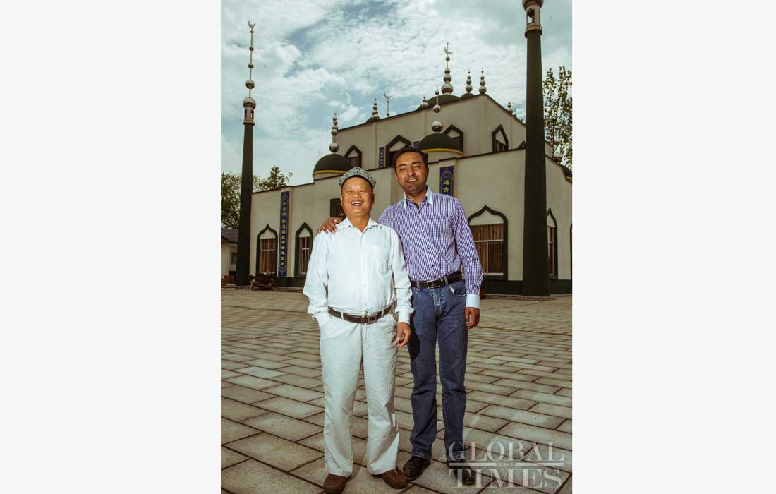 Abudu (right) from Urumqi, Xinjiang, poses for a photo with Jian Xiangdang outside his home in Fengshu. Abudu said he gets a sense of belonging in Fengshu, and that Muslims worldwide are one big family. Photo: Li Hao/GT