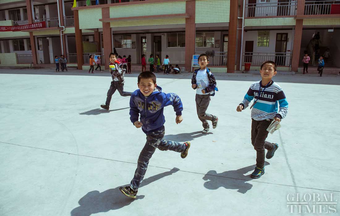 Kids from several ethnicities, including Uyghur, play together at an elementary school. Many old men in the township hope their offspring can follow basic Muslim customs. Photo: Li Hao/GT figcaption >