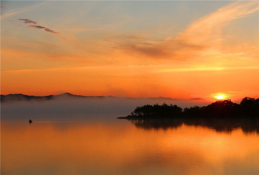 Pictured is the beautiful scenery of Ussuri River at sunrise in Raohe county of Heilongjiang Province on June 16, 2017. Photo: CFP figcaption >