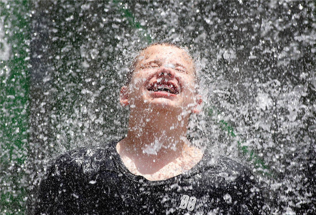 A boy cools himself off during an intense heat wave in Phoenix of Arizona, US on June 20, 2017. Photo: CFP figcaption >