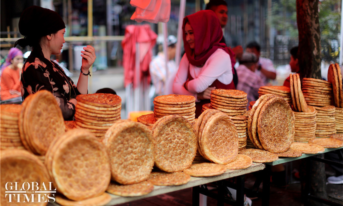 Foods are displayed outside of Huxi mosque on Eid al-Fitr. Photo: Yang Hui/GT figcaption >