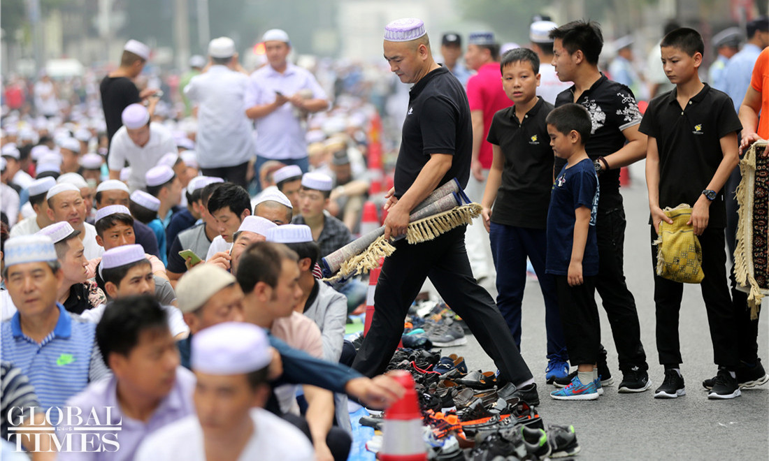 Hundreds of Muslims pray outside of Huxi mosque on Eid al-Fitr. Photo: Yang Hui/GT