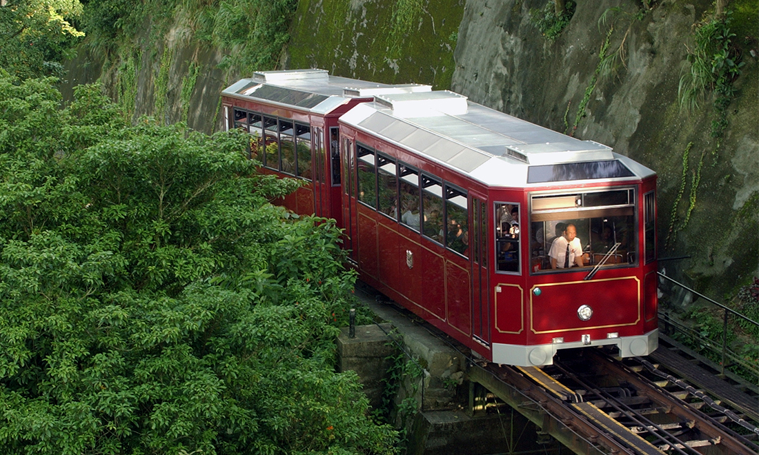The Peak Tram moves along the track on September 8, 2003. Photo: CFP figcaption >