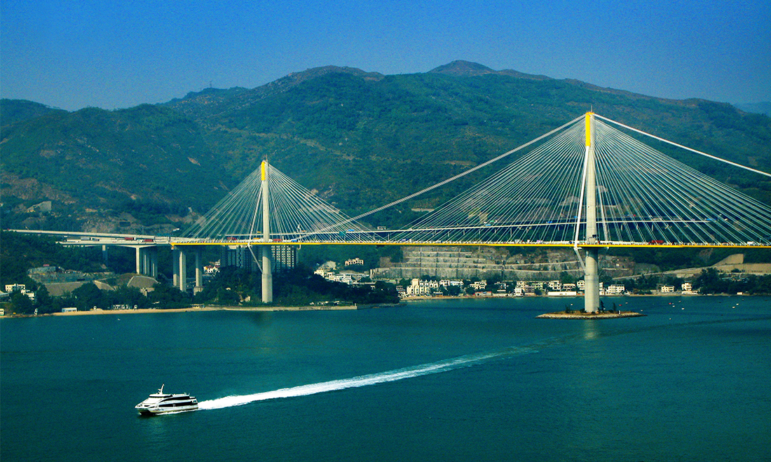 Photo taken on November 15, 2008 shows the Tsing MA Bridge connecting Lantau Island and the Hong Kong International Airport. Photo: CFP figcaption >
