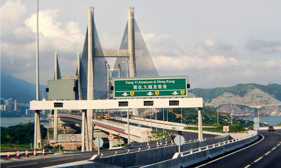 The entrance of the Tsing MA Bridge is seen on August 6, 2015. The bridge opened on May 22, 1997, witnessing the city’s development over the past 20 years. Photo: CFP figcaption >