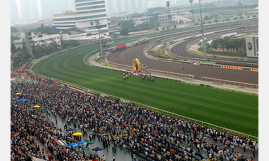 People watch a horse race at Sha Tin Racecourse on April 28, 2008. Photo: Xinhua figcaption >