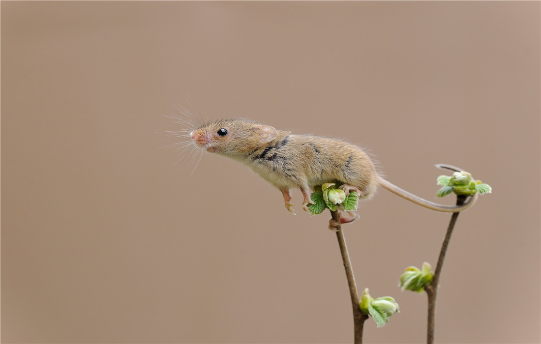 Generally speaking, a wild harvest mouse is too small to be discovered. They are, on average, only 1.5 inches long. Dean Mason, a 50-year-old wildlife photographer, raises the mice and brings them to the wild for snapping pictures of them in action from a close distance. During the shooting process, these cute harvest mice are rolling about on plants and flowers, and enjoying the sunshine, which is warm and cozy. Photo: CFP