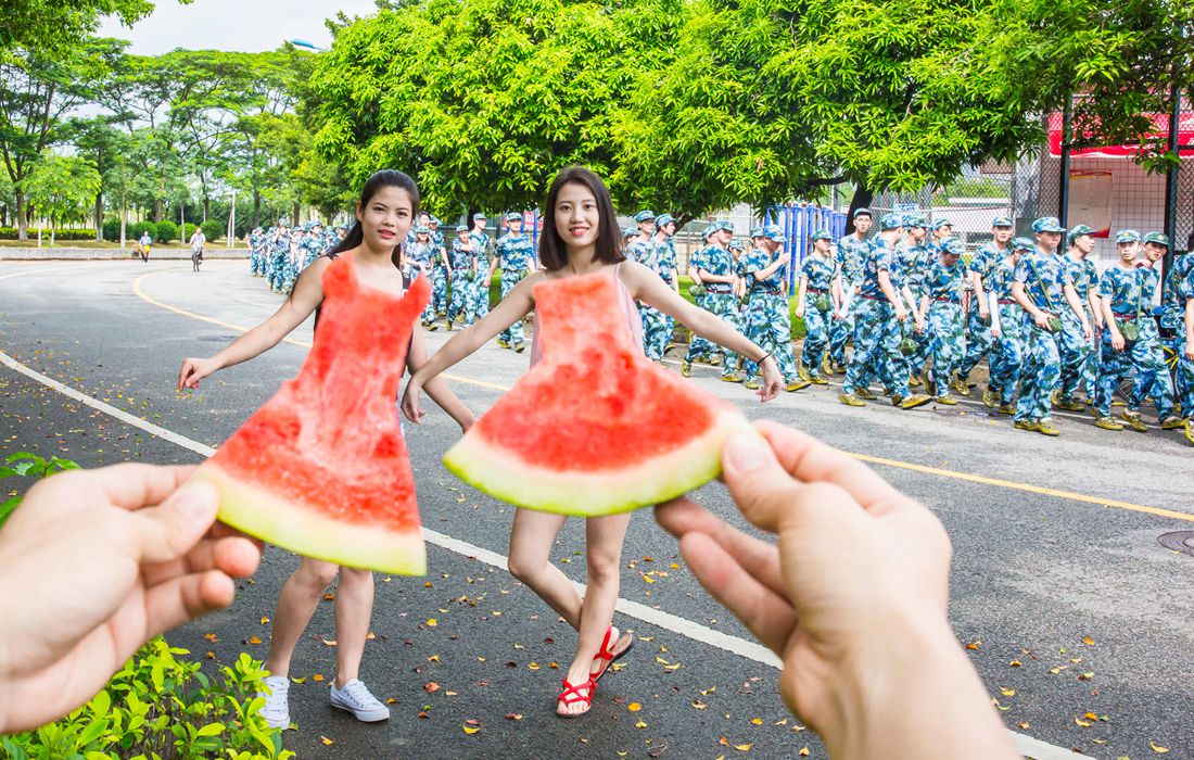 A photographer has created some photos of people “wearing” watermelon dresses on a hot summer day in Baiyun District in China’s Guangzhou as a heat wave hits large parts of China on July 7, 2017. Photos: CFP