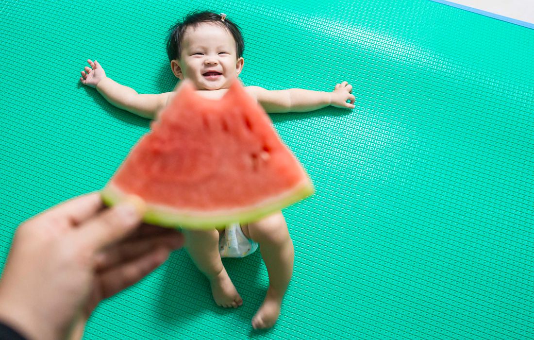 A photographer created cooling photos of a baby “wearing” a watermelon dress on a hot summer day in Baiyun District in China’s Guangzhou as a heat wave hits large part of China on July 7, 2017. Photo: CFP figcaption >