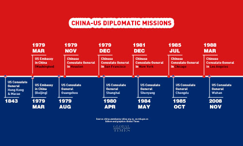 Since the establishment of diplomatic relations in 1979, China and the US have each set up five consulates in the other country. Chinese Consulate ...