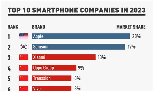 Chinese smartphone brands have secured over half of the world's market share in 2023. Eight of the top 10 brands were from China, with ...