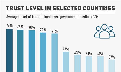 Average trust level in selected countries.