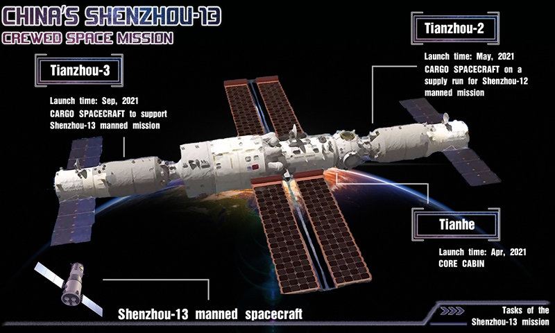 Shenzhou-12 successfully launched for manned mission to space on Jun 17 2021. Graphic: GT