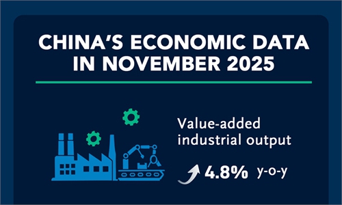 China's key economic data in November 2025: -Value-added industrial output up 4.8% y-o-y; -Service production index up 4.2% y-o-y; -Retail sales of consumer ...
