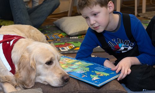 A library in high-tech Estonia is getting children to read out loud to dogs to boost children's confidence, reading and social skills with a little help from man's best friend.