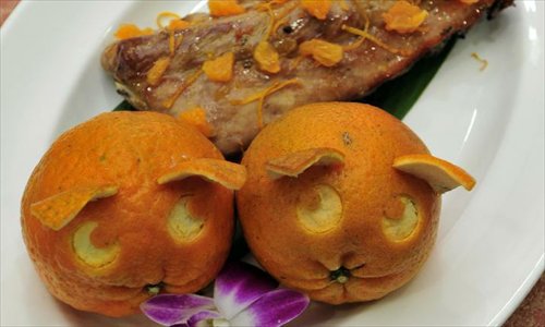 Photos taken on January 23, 2013 show creative dishes in Taipei, southeast China's Taiwan. Dieticians from Taiwan University Hospital created ten dishes mostly made from vegetables and fruits, promoting a healthy dinner in the coming Spring Festival.