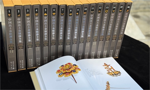 China Science Publishing & Media Ltd published the Complete Collection of Gold and Silver Artifacts Unearthed in China on Sunday. Comprising 16 volumes, the collection includes 4,234 sets of unearthed gold and silver artifacts from the Bronze Age to the Ming (1368-1644) and Qing (1644-1911) dynasties. Archaeologist Qi Dongfang told the Global Times that the collection has brought together most of the gold and silver artifacts unearthed in China for the first time.