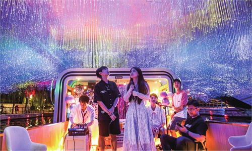 By day, Beijing's Liangma River pulses with the energy of daily life: elderly residents walk their dogs, children ride bicycles, and young people glide by on skateboards. The moist scent of the river blends with the sounds of singing and drumming, filling the air with a lively urban spirit. But once night falls and the city's lights flicker on, the riverside transforms into a completely different world. Neon lights mingle with the water, conjuring a dreamlike ambiance. Steeped in centuries of history, Liangma River now uses artificial illumination to tell new stories of Beijing to both residents and visitors. As night falls, visitors board riverboats at the Blue Harbor Pier. The moment the boat sets off, both banks are instantly aglow, the lights cascading like galaxies, shimmering and flowing. The bridges of Maijia, Haoyun, Lanmeng, Liuli, and Guanlan, each with its own unique form and character, appear in dazzling succession, painting a fantastical scene reminiscent of Van Gogh's swirling starry skies. Architectural outlines are traced in bands of light, their reflections merging seamlessly with the water, melting into the night, so that one feels transported into a fairytale.