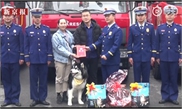 A woman and her Siberian husky, who can howl like the siren of a firetruck, have been made honorary members of local fire brigade, in Qiannan, Southwest China's Guizhou Province.