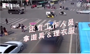 Eschewing the traditional romantic seaside or flowery background, a couple in Central China took their wedding photos in the middle of zebra crossing of a busy intersection before being chased away by the traffic police.