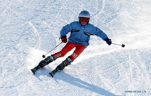A man skis at Jiangjunshan Ski Resort in Altay, northwest China's Xinjiang Autonomous Region, Jan. 31, 2013. Thanks to its snow and ice resources, Altay received 87,300 traveler trips from mid-October of 2012 to Jan. 22 this year with tourism revenues hitting 58.49 million yuan (9.4 million US dollars). (Xinhua/Sadat)