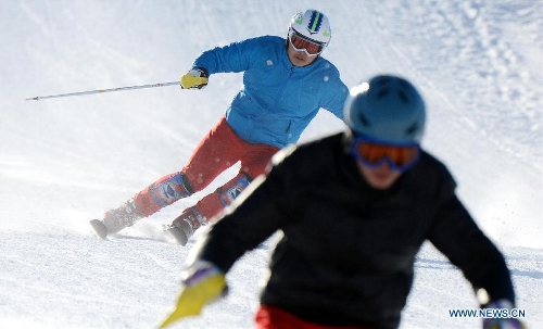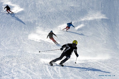 People ski at Jiangjunshan Ski Resort in Altay, northwest China's Xinjiang Autonomous Region, Jan. 31, 2013. Thanks to its snow and ice resources, Altay received 87,300 trips from mid-October of 2012 to Jan. 22 this year with tourism revenues hitting 58.49 million yuan (9.4 million US dollars). (Xinhua/Sadat)