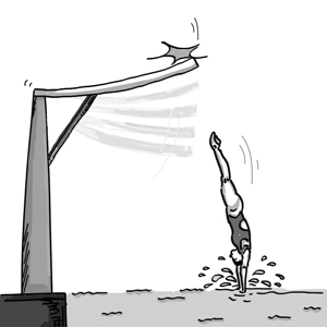 It seems that the organizers have under-evaluated the difficulties of diving from a psychological perspective. Every four years during the Summer Olympic Games, spectators enjoy marveling at the performances of top diving athletes from all over the world. Even those who represent the very highest level of the sport make mistakes, sometimes resulting in serious injury. So it's understandable that ordinary people who have received no training are not enthusiastic to take the plunge themselves.