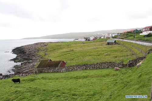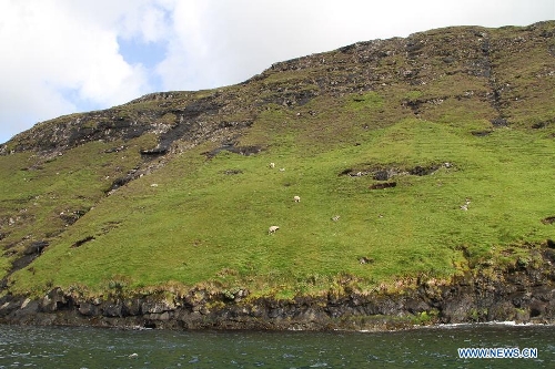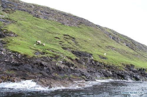 Photo taken on Aug. 20, 2013 shows a pasture along the costal line of Faroe Islands. The Faroe Islands are an island group and archipelago under the sovereignty of the Kingdom of Denmark, situated between the Norwegian Sea and the North Atlantic Ocean. The total area is approximately 1399 sq. km. with a population of almost 50,000 people. The fishing industry is the most important source of income for the Faroes. Tourism is the second largest industry, followed by woolen and other manufactured products. (Xinhua/Yang Jingzhong)