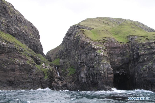 Photo taken on Aug. 20, 2013 shows the cliff along the costal line of Faroe Islands. The Faroe Islands are an island group and archipelago under the sovereignty of the Kingdom of Denmark, situated between the Norwegian Sea and the North Atlantic Ocean. The total area is approximately 1399 sq. km. with a population of almost 50,000 people. The fishing industry is the most important source of income for the Faroes. Tourism is the second largest industry, followed by woolen and other manufactured products. (Xinhua/Yang Jingzhong)