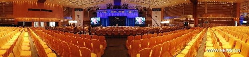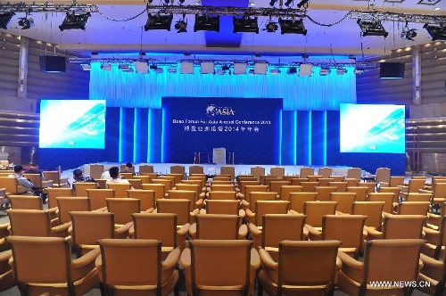 Photo taken with a cellphone on April 8, 2014 shows the main hall of the Boao Forum for Asia (BFA) Annual Conference 2014 in Boao, south China's Hainan Proince, April 8, 2014. The forum will be held from April 8 to 11. (Xinhua/Chen Yehua)