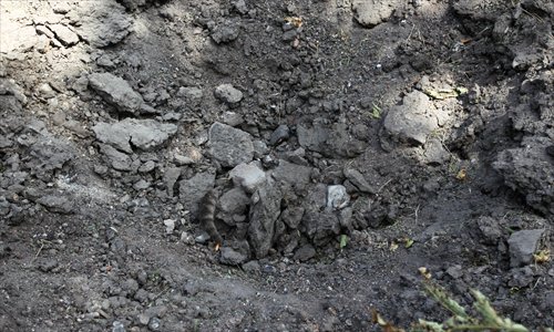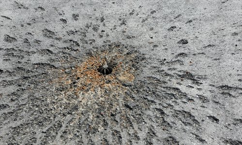 A shell that failed to detonate on the road to the Donetsk International Airport, Ukraine on July 28. Photo: Cui Meng/GT