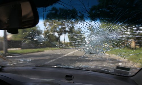 A view from inside a vehicle in which two government soldiers were shot dead while attacking a rebel stronghold in a residential area near Donetsk International Airport in east Ukraine on July 28. Photo: Cui Meng/GT