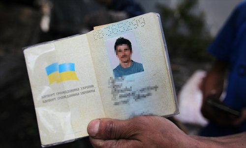 The Ukrainian passport of a victim of the deadly bombings in Donetsk, Ukraine on July 28. Ukrainian government forces launched multiple artillery attacks in Oktyabrsky district, some 600 meters away from Donetsk International Airport. Photo: Cui Meng/GT
