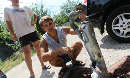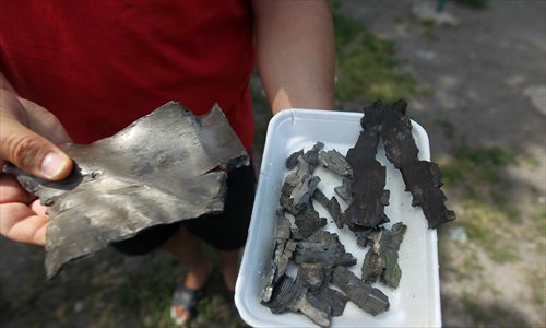 Shrapnel pieces from a bombing in Donetsk, Ukraine on July 28. Photo: Cui Meng/GT