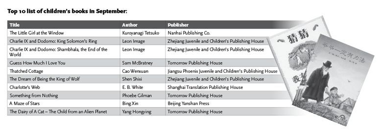 The children's book market finally sees some changes with the September list, with less Charlie IX and Dodomo books and more translated works. Guess How Much I Love You and Something from Nothing, both well-established foreign children's books, have now become favorites among children all over China.
