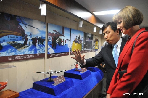 Guests and local residents visit the Chinese icebreaker Xue long in Christchurch, New Zealand, Jan. 17, 2015. Chinese icebreaker and polar research vessel Xue Long arrived at Lyttelton Port in Christchurch on Friday. The Christchurch City Council and Antarctica New Zealand welcomed the vessel in Maori style. (Xinhua/Su Liang)