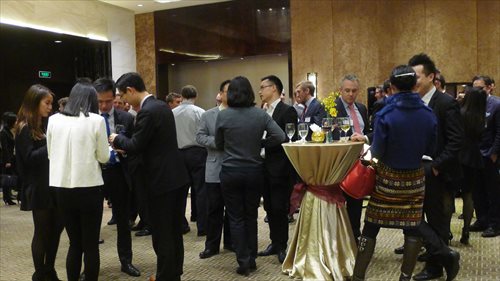 Guests mingle at the centenary launch party for the British Chamber of Commerce Shanghai.
